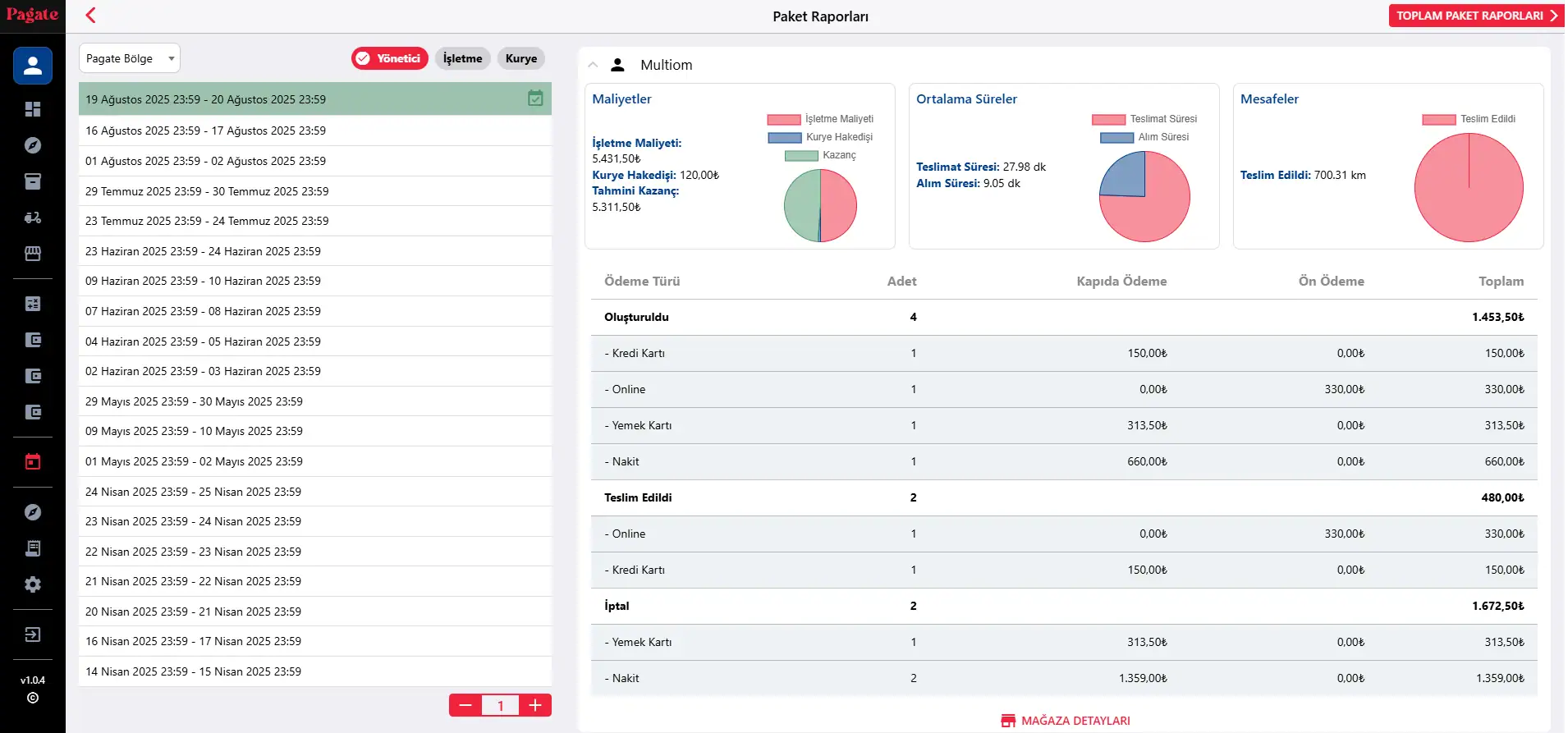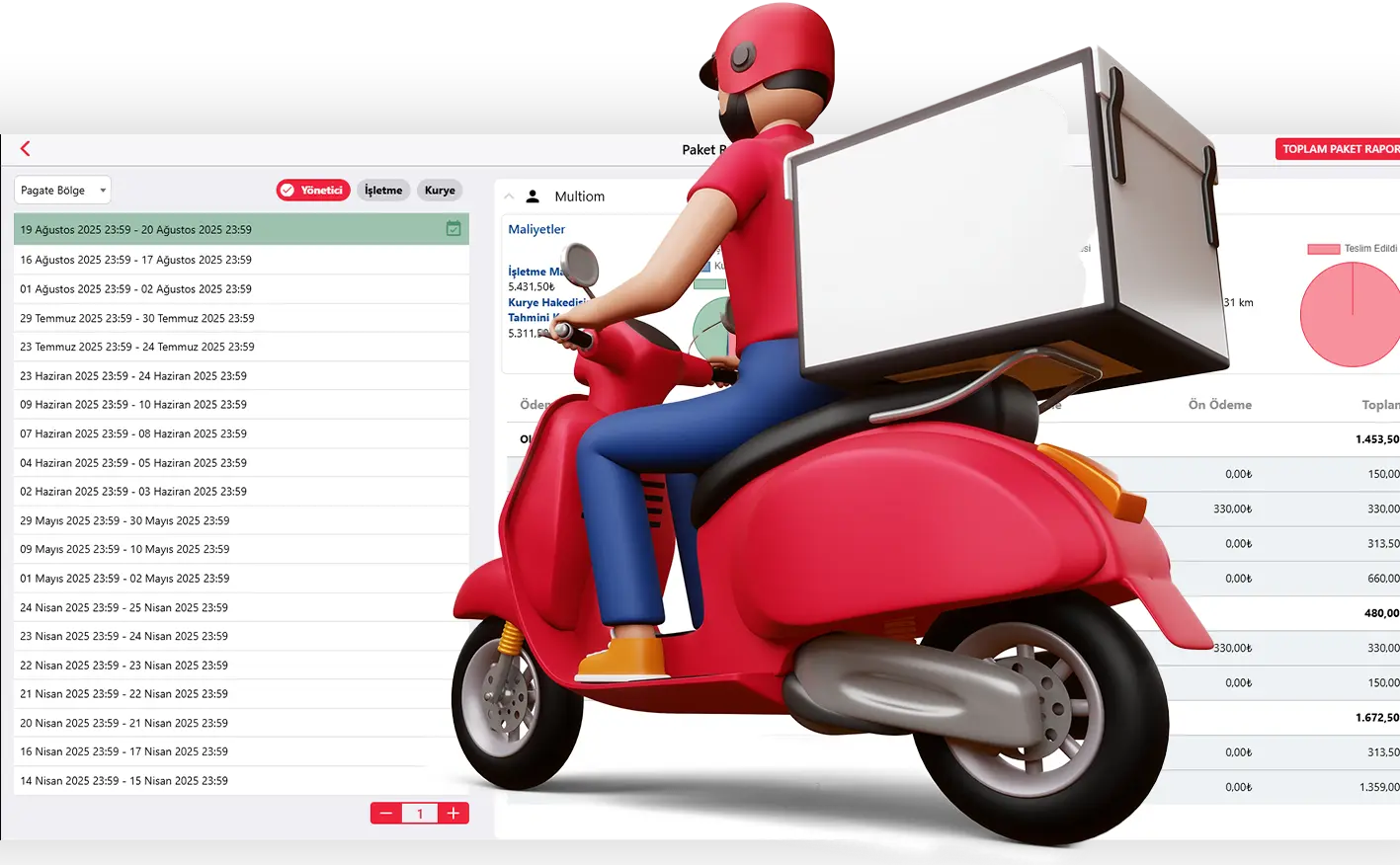 Siparişler otomatik alınır, kuryeye ataması yapılır, teslimat süreçleri izlenir.